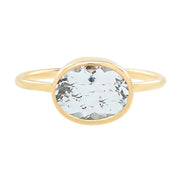This beautiful 14k gold ring features a one-of-a-kind oval aquamarine. Wear it solo or stack with bands, or other gemstone rings.