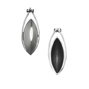 These three dimensional sterling silver earrings are a great statement piece. The interior is oxidized, creating a dramatic contrast between the dark black and the light silver. Great to wear for a bold look.