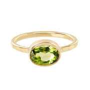 This beautiful 14k gold ring features a one-of-a-kind oval peridot. Wear it solo or stack with bands, or other gemstone rings.