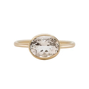 This .9 carat morganite ring is made to wear solo, with a band or stacked with other rings. The stone is set in 14k gold.