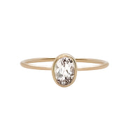 This .55 carat morganite ring is made to wear solo, with a band or stacked with other rings. The stone is set in 14k gold.